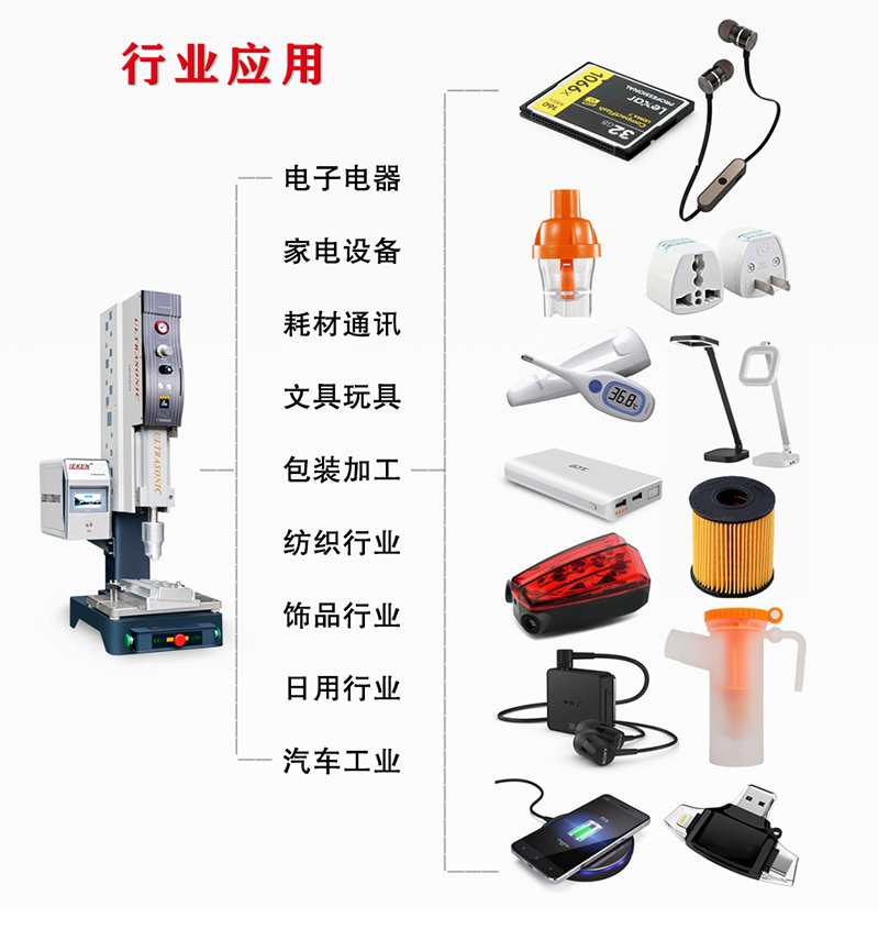 超聲波焊接設備廣泛應用于多個行業領域。無論是電子產品、汽車制造、醫療設備還是塑料包裝等,它都能發揮出色的作用。超聲波焊接設備適用于各種塑料材料的焊接,如ABS、PC、PE、PP等,具備很強的通用性和適應性。